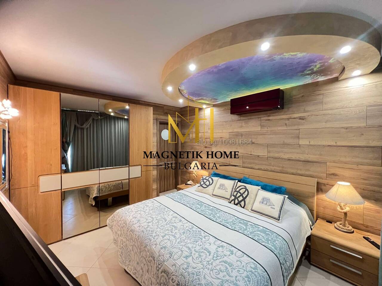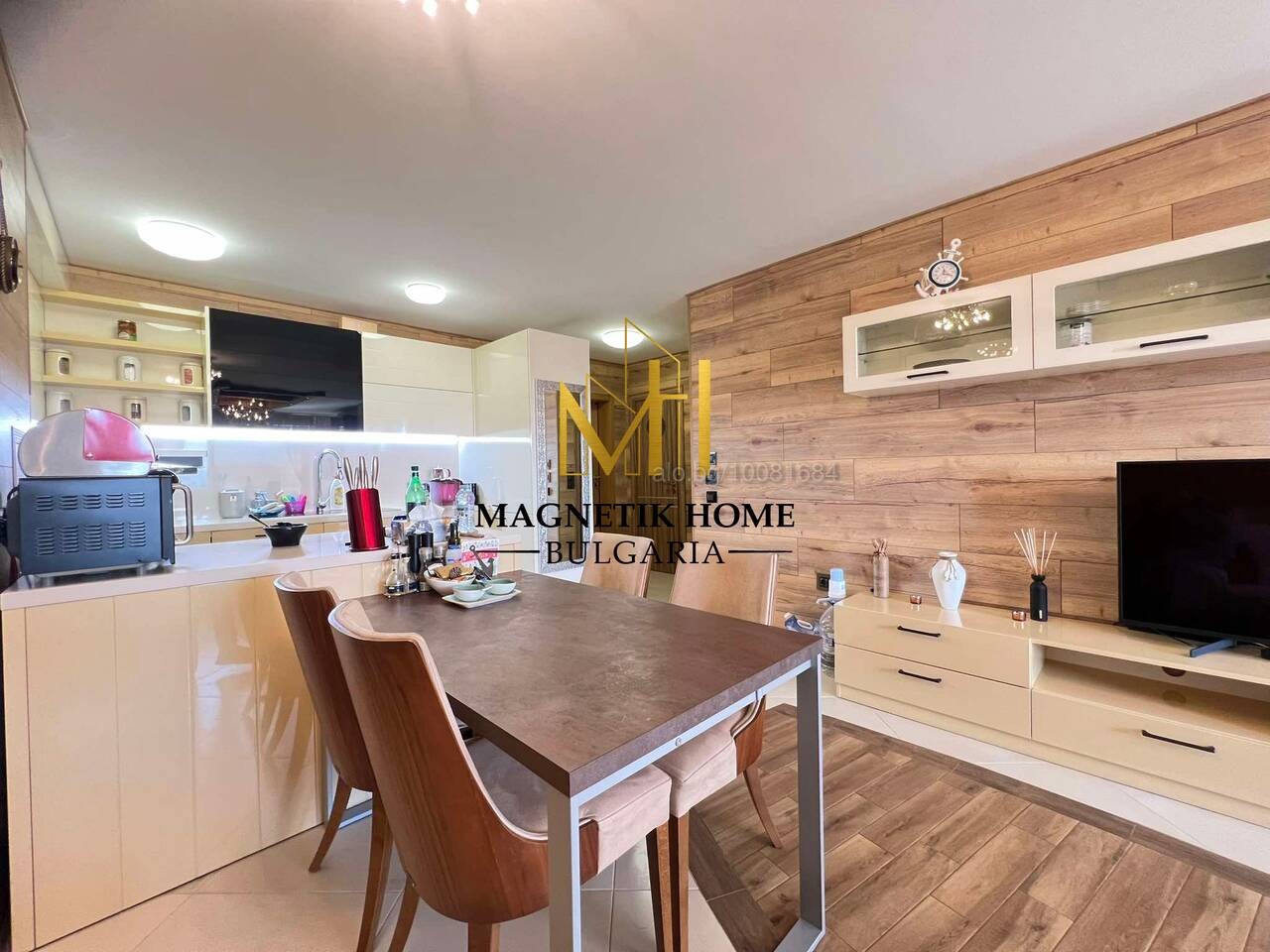 Апартаметът е оборудван изцяло до най - малкият детайл като в допълнение се предлагат 2 чисто нови хипер инвенторени климатика Mitshubishi , 2 СМАРТ телевизора, високо - качествени вградени електроуреди, съдомиялна, сушилня, кафемашина, микровълнова, прахосмукачка, тостер, ютия, цялостна кухненска посуда, спално бельо и т.н.