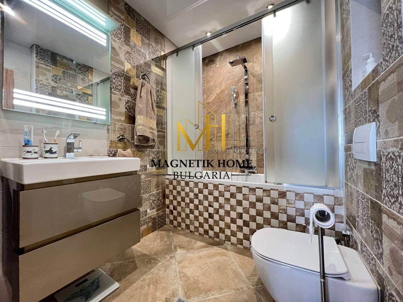 Драги наематели, Ние от агенция за недвижими имоти Magnetik Home имаме огромното удоволствие да ви зарадваме с тази неустоима оферта, а именно луксозен двустаен апартамент с 2 бани и паркомясто в супер център.