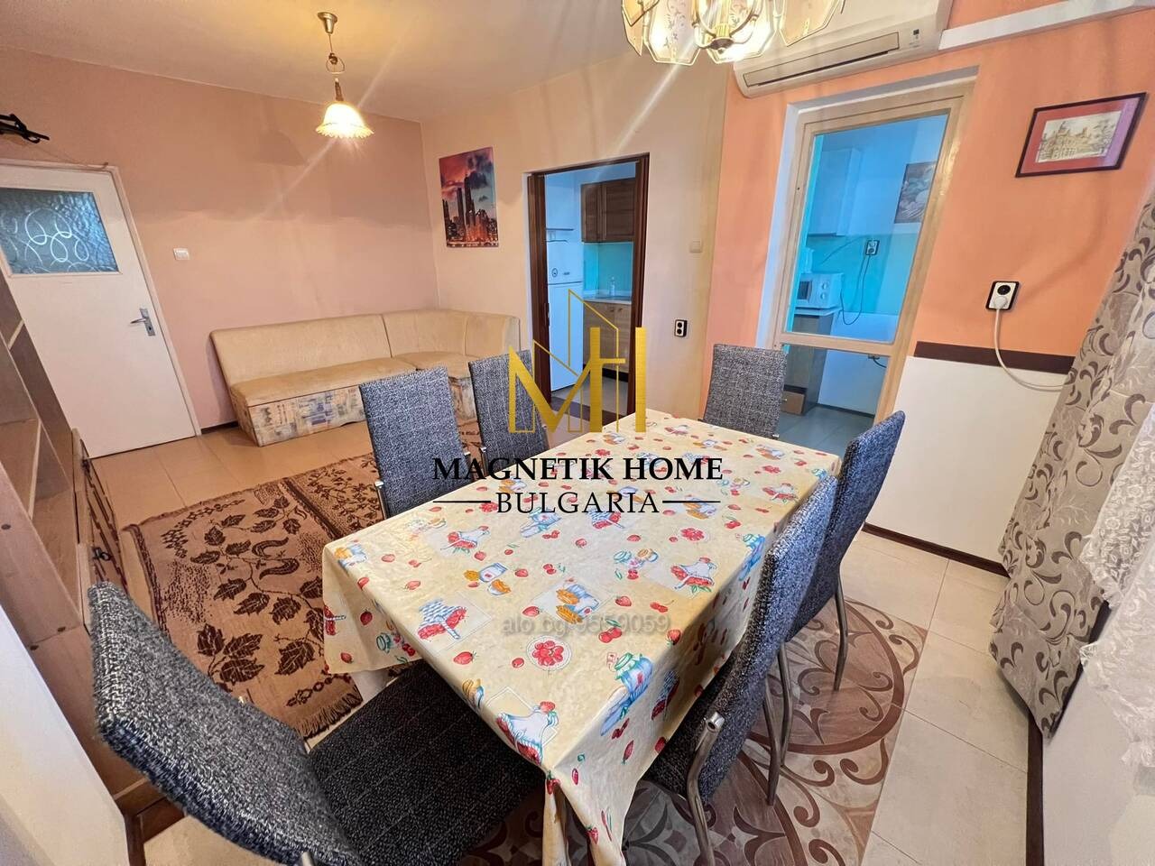 Апартаметът е оборудван изцяло до най - малкият детайл като в допълнение се предлагат 3 инвенторени климатика Daikin , високо - качествени електроуреди, цялостна кухненска посуда, спално бельо и т.н.