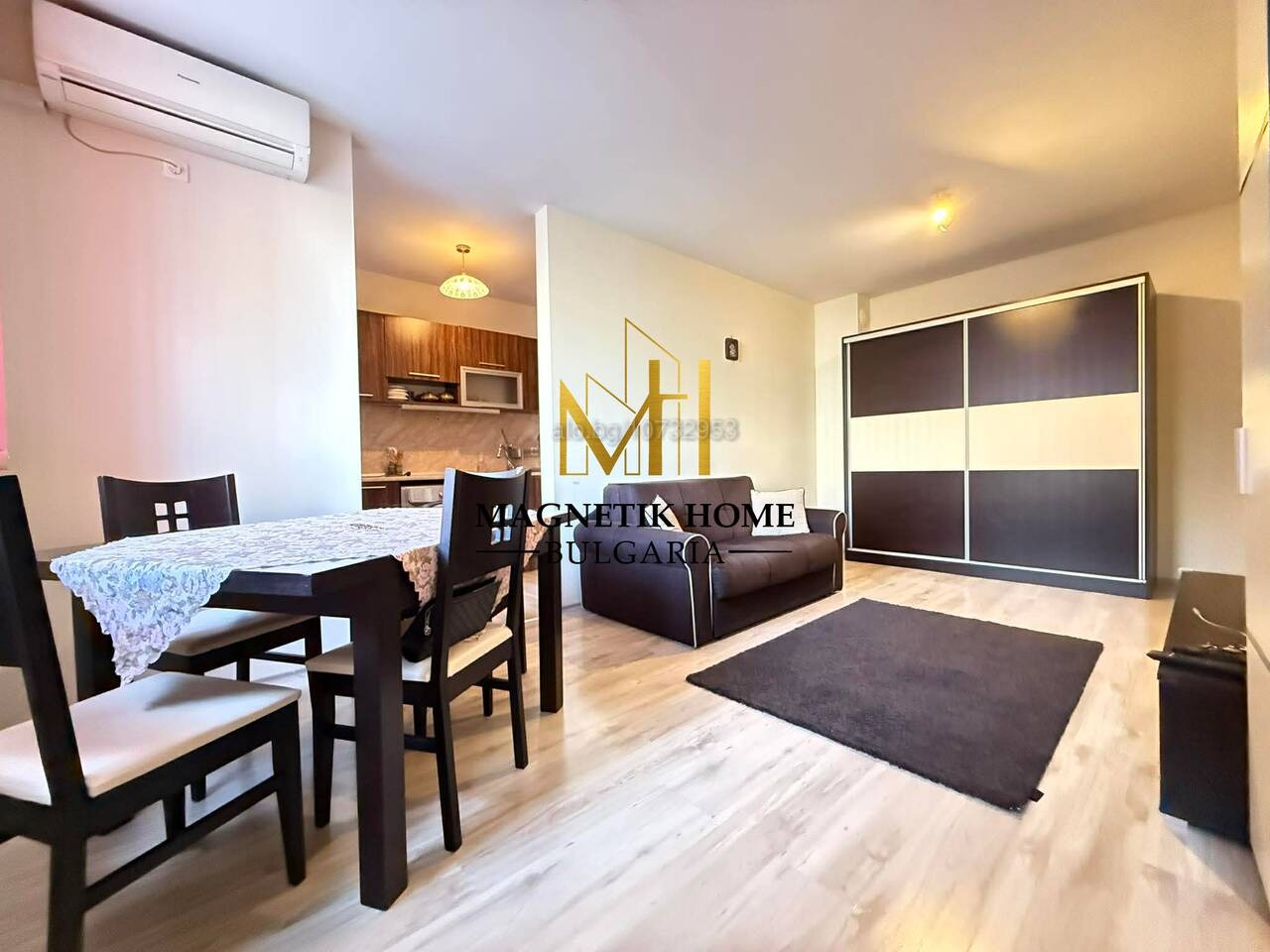 Апартаметът е оборудван изцяло до най - малкият детайл като в допълнение се предлагат нов инвенторен климатик Daikin , плазмен телевизор, качествени електроуреди, микровълнова, цялостна кухненска посуда, прахосмукачка, спално бельо и т.н.