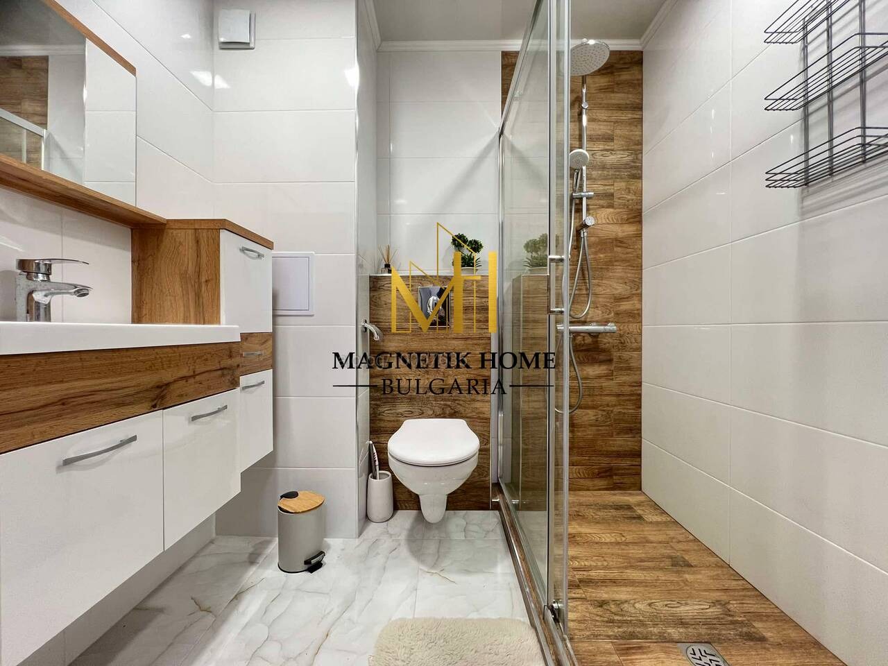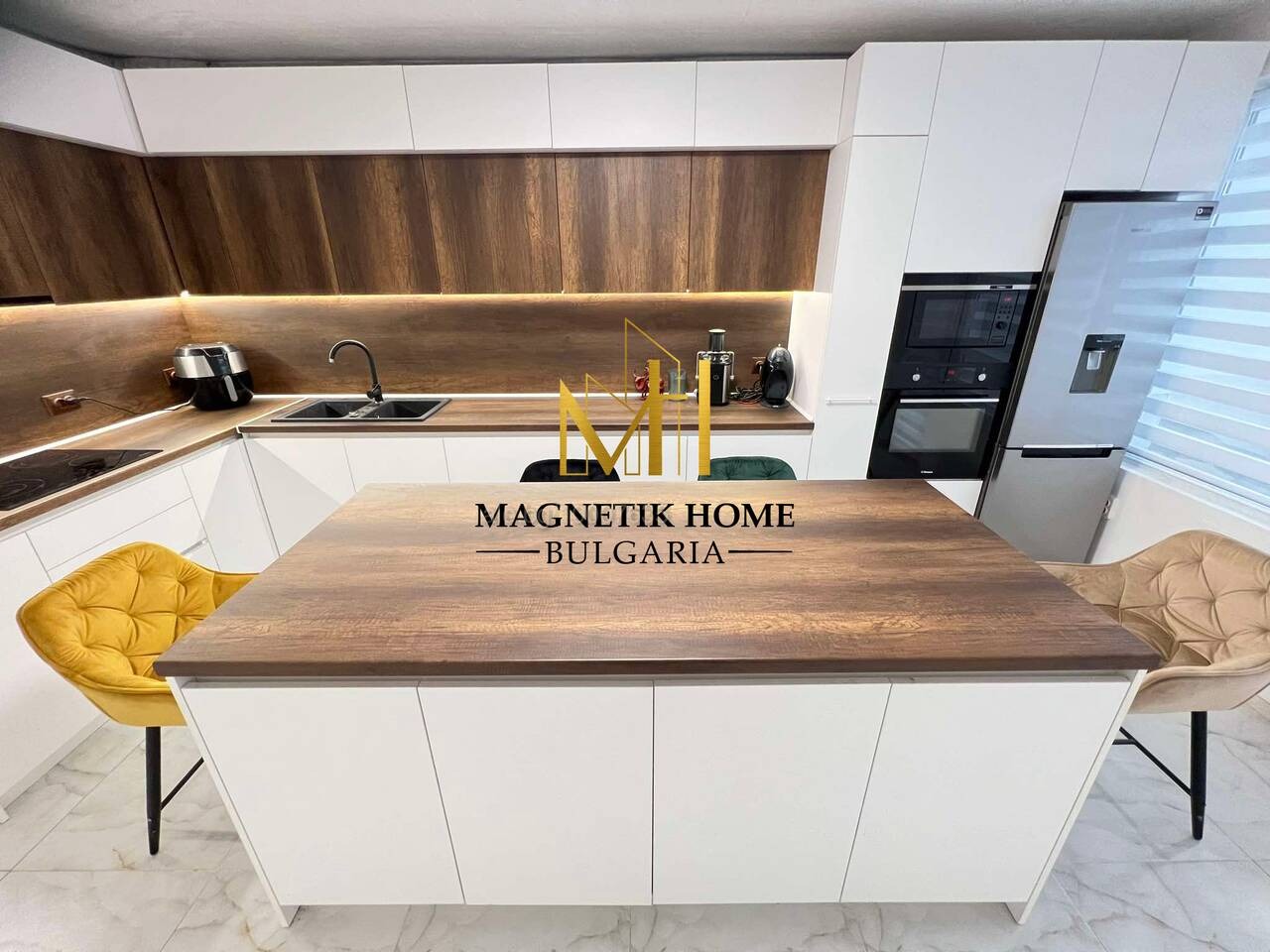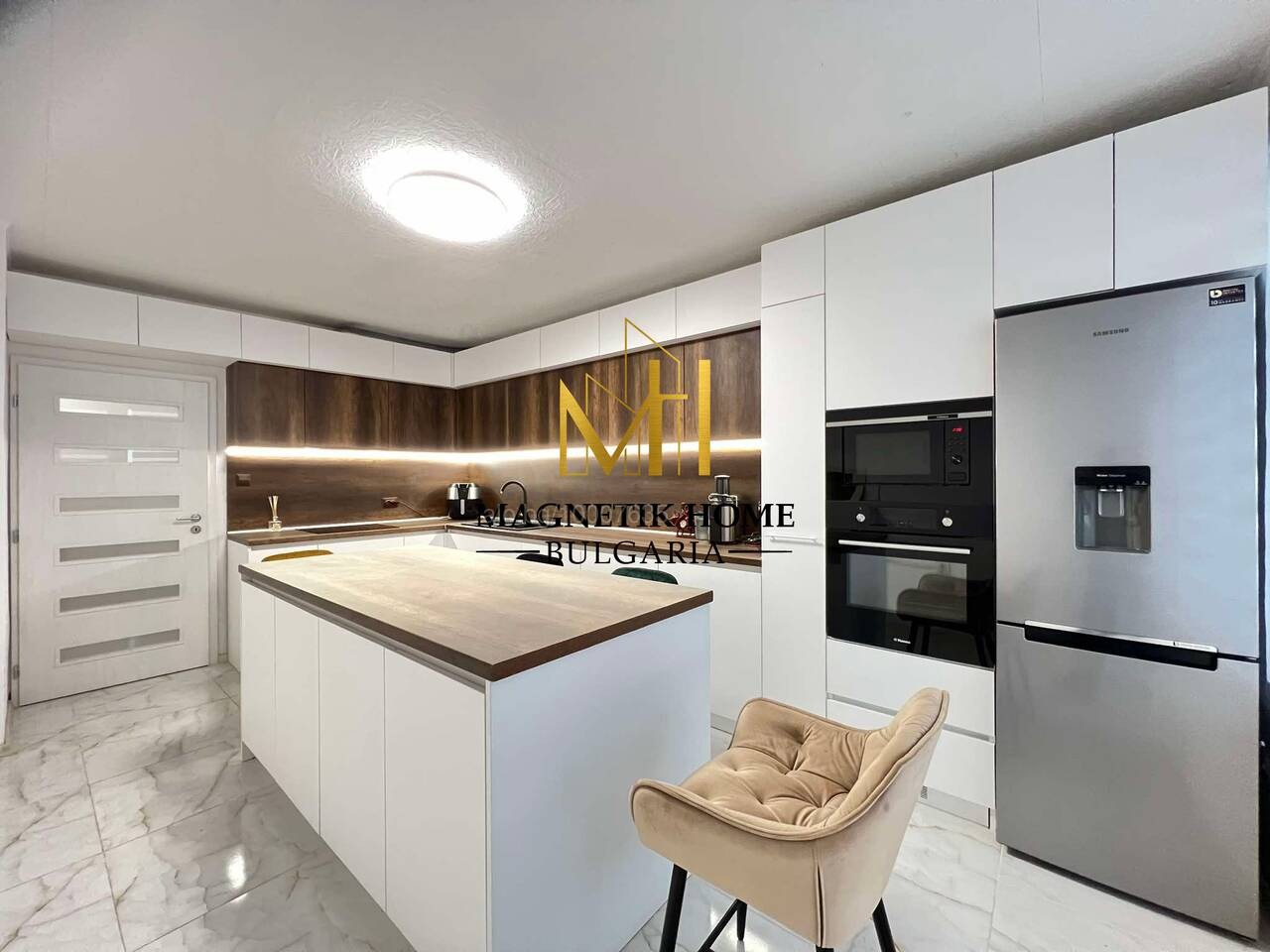 Апартаметът е оборудван изцяло до най - малкият детайл като в допълнение се предлагат 2 инвенторени климатика, ЧИСТО НОВИ високо - качествени ВГРАДЕНИ електроуреди, нова съдомиялна, сушилня Samsung , нова пералня Samsung , Air Fryer, кафемашина, тостер, кана за гореща вода, микровълнова, прахосмукачка, ютия, цялостна кухненска посуда, спално бельо и т.н.