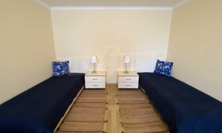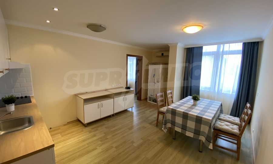 Дневната стая позволява функционалното зониране: зона-кухня и зона-трапезария, с маса за четирима. Настилките в имота са с качествен ламиниран паркет. Оборудването в кухнята е от IKEA и включва: вградени котлони, хладилник, мивка с батерия и кухненски шкафове. Спалнята е уютна и просторна, с три легла и три нощни шкафчета, TV скрин и маси за кафе, удобен диван. На разположение са климатик, кабелна телевизия и Интернет. Имотът има напълно оборудвана баня с душ кабина.