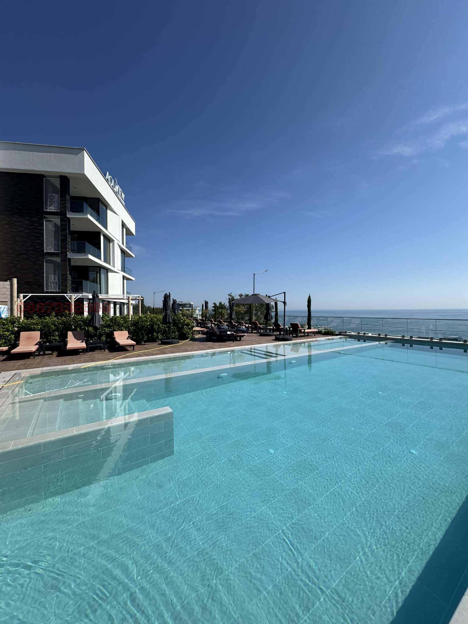 бутикова сграда, морска панорама, климатизация, напълно обурудван и обзведен с всичко необходимо за комфортно пребиваване, смарт брава с лицево разпознаване, пръстов отпечатак, магнитна карта и видеофон, денонощно видеонаблюдение и охрана, включена такса поддръжка, а също така и достъп до спа център, фитнес и неограничено ползване на отопляем външен басейн, електрически велосипед. Магазини на партерния етаж както и ресторант. 100м до плажа. Опция за подземно паркомясто с възможност за зареждане на електрически автомобил