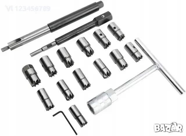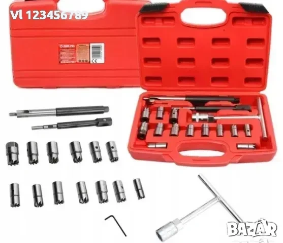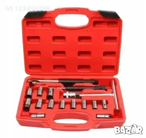 Предлага се с 13 различни фрези, които стават за повечето дизелови автомобили. T-образният ключ в комплекта е от хром ванадий.