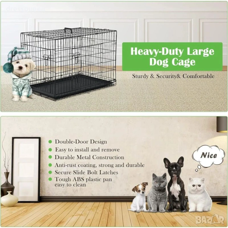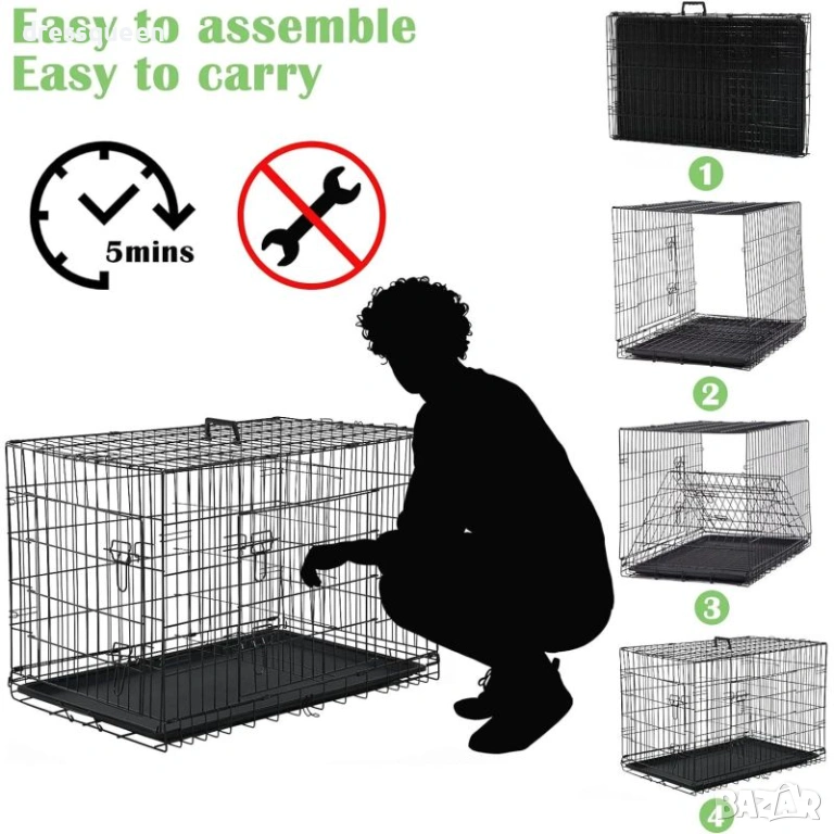 Практична и сигурна, тази сгъваема метална клетка за кучета предлага удобство както за транспортиране, така и за ежедневна употреба у дома.