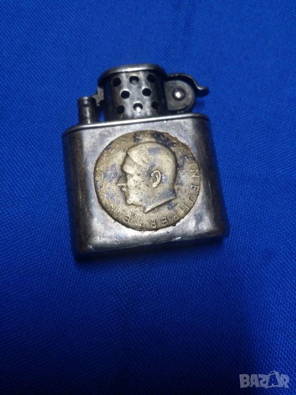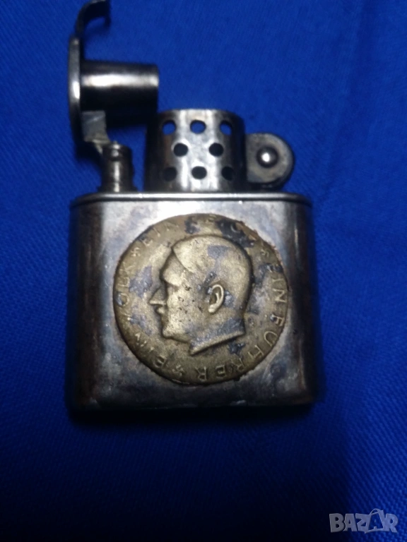 Немска метална бензинова запалка. Лика е на Хитлер а около него има надпис