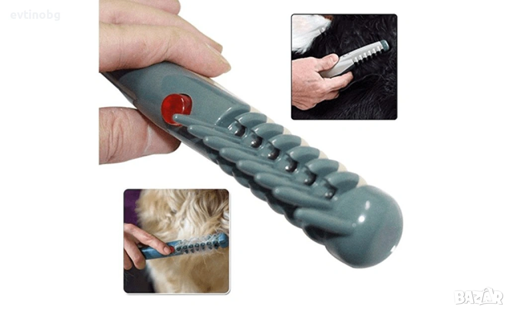 Един от най-продавани продукти за грижа за вашия любимец- електрически гребен. Малкият и удобен гребен освен, че ще ви отърве от нежеланите косми, прави масаж на вашия домашен любимец и помага при смяната на козината на животното. Премахва незабавно възли и сплитане! Без болка или стрес за животното!