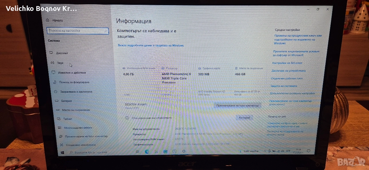 Продавам лаптоп