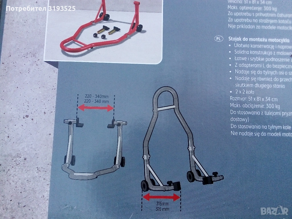 Стойка за повдигане на мотоциклет, снимка 1 - Аксесоари и консумативи - 53877708 Стойка за повдигане на мотоциклет, снимка 2 - Аксесоари и консумативи - 53877708 Стойка за повдигане на мотоциклет, снимка 3 - Аксесоари и консумативи - 53877708 Стойка за повдигане на мотоциклет, снимка 4 - Аксесоари и консумативи - 53877708 1/4