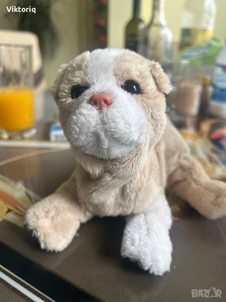 Интерактивно куче на марката Furreal реагира на галене допир има и бутон за смяна на режима когато заспи почват да хърка отваря и затваря очички и се мърда