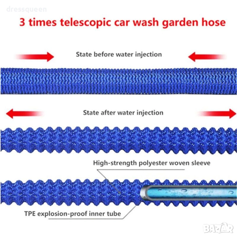 4516 Гъвкав градински маркуч с пистолет за миене – до 22.5 м