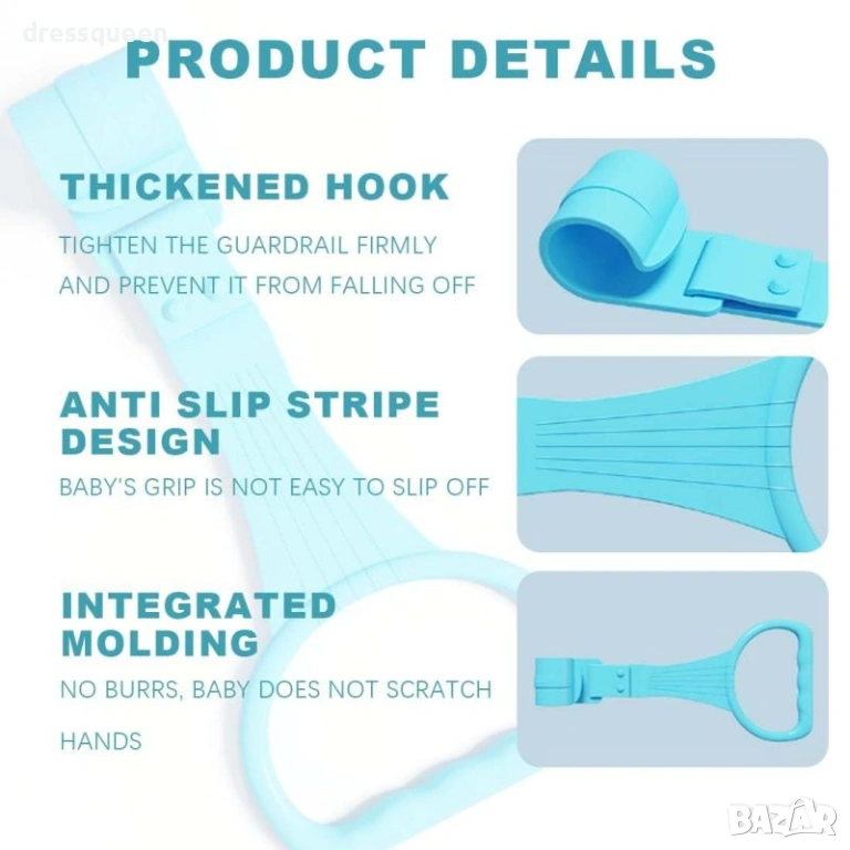 Помогнете на вашето бебе да направи първите си опити да се изправя с тази практична и удобна дръжка за кошара. Изработена от здрава и безопасна пластмаса, тя е лека, но устойчива, с противоплъзгащ ринг, който осигурява стабилен захват за малките ръчички.