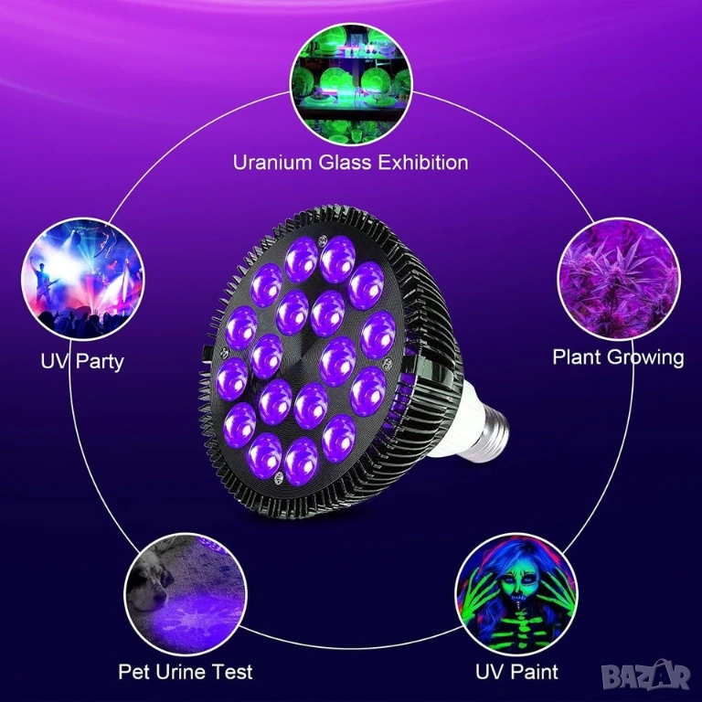 UV 36W крушка LED черна светлина E27 PAR38, снимка 1 - Лед осветление - 53877998 UV 36W крушка LED черна светлина E27 PAR38, снимка 2 - Лед осветление - 53877998 UV 36W крушка LED черна светлина E27 PAR38, снимка 3 - Лед осветление - 53877998 1/3