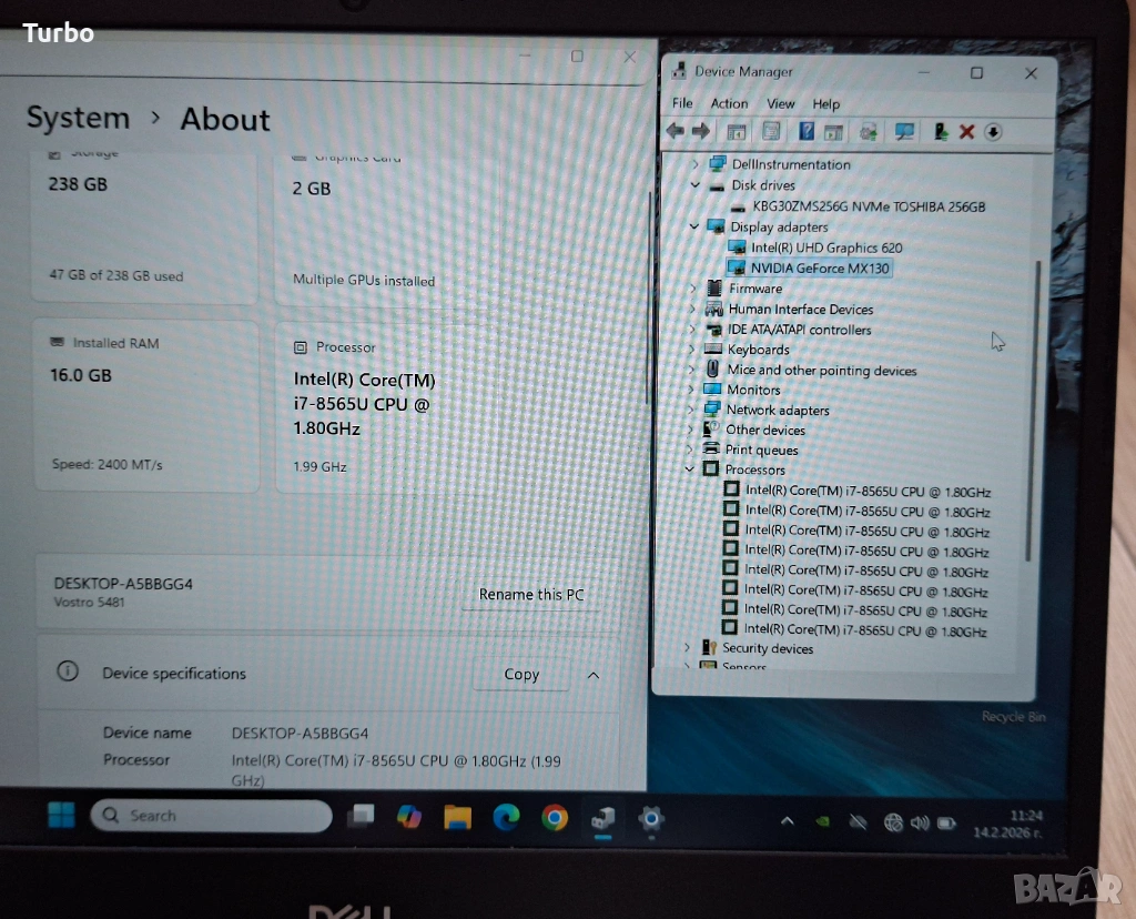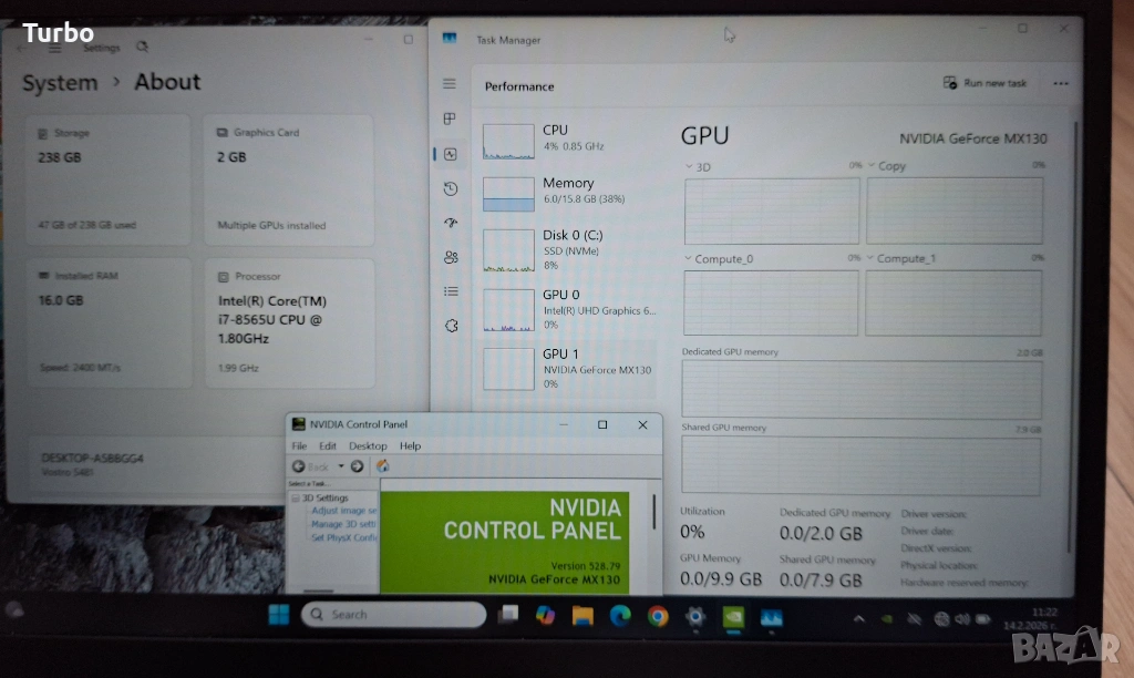 Видеокарта: Nvidia GeForce MX130 със собствена 2GB GDDR5