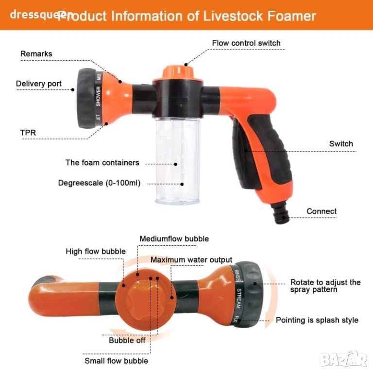 Насладете се на пълен контрол и удобство с този многофункционален пистолет за маркуч с пяна резервоар.