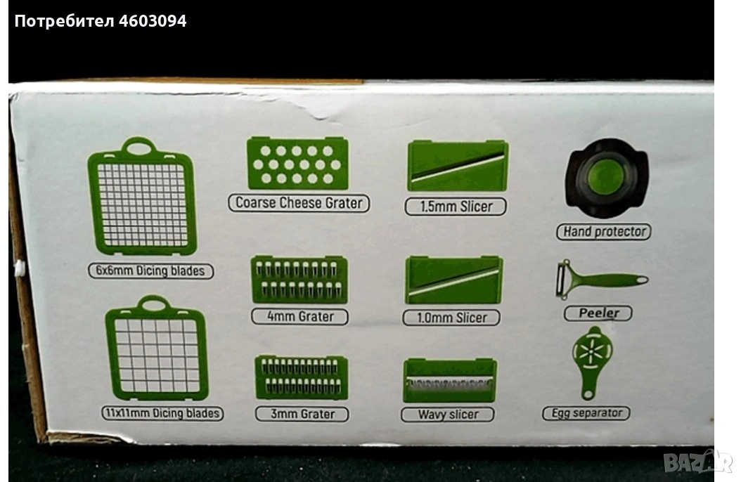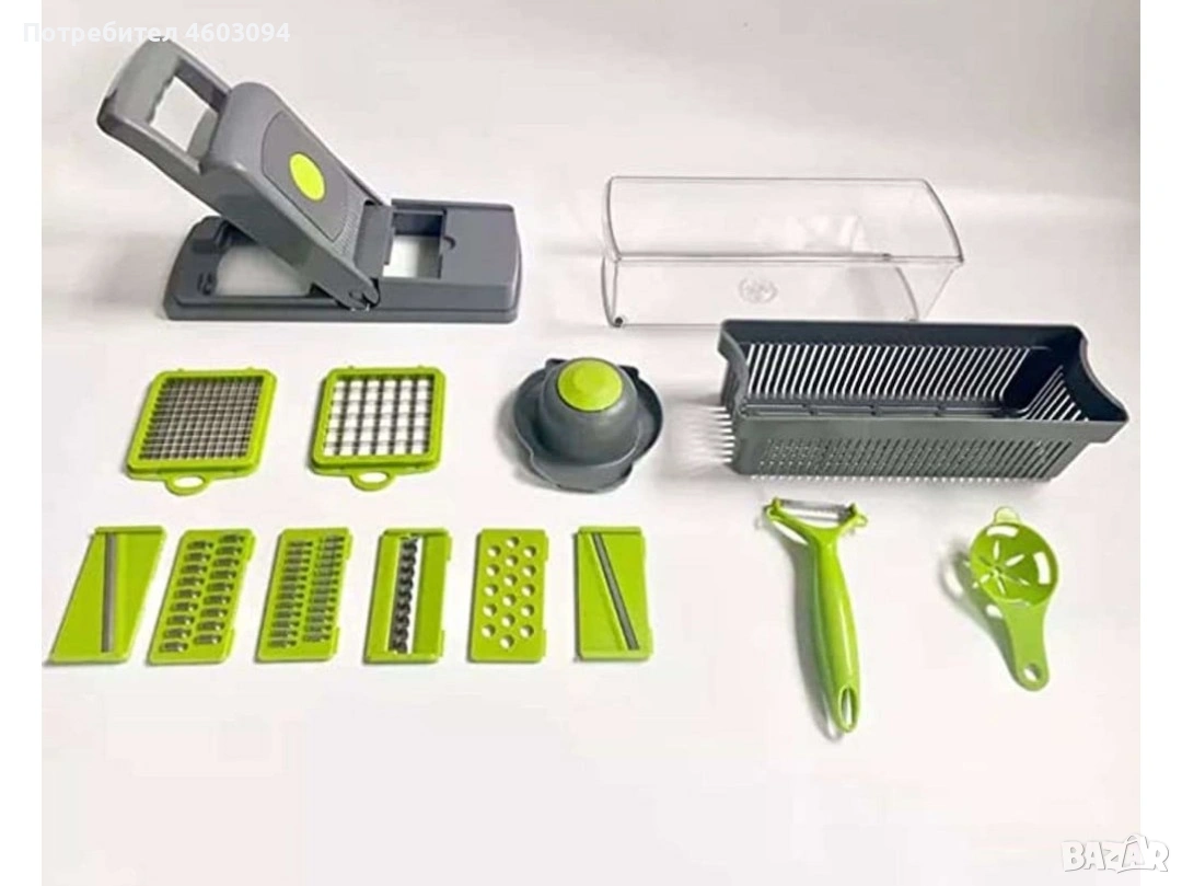 Комплектът кухненски резачки от 14 части е практичен и универсален комплект кухненски инструменти, който може да бъде идеален избор за кухненски работни процеси. Комплектът включва разнообразие от подвижни ножове, които могат да се използват за различни задачи, включително настъргване, рязане и нарязване на кубчета. По-долу ще обобщя накратко различните опции за ножове: 2 ножа за нарязване на кубчета (11 x 11 мм, 66 мм): Тези ножове са подходящи за нарязване на по-малки кубчета, например зеленчуци, плодове или други съставки. 1 едро ренде за сирене: Отлично за настъргване на сирена, което ви позволява да добавяте прясно настъргано сирене към различни ястия. 1 вълнообразен резец: Идеален за приготвяне на картофи, тиквички, тиква или зеле, както и за приготвяне на салата Coleslaw. Вълнообразното нарязване може да добави и декоративен елемент към ястията. 1 ренде (4 мм): Полезен инструмент за настъргване на сирена, паста, картофи и лук без разкъсване, докато режете лук. 1 фино ренде (3 мм): Идеално за фино настъргване на чесън, джинджифил, индийско орехче или дори шоколад. 2 резачки (с дебелина 1,0 мм и 15 мм): Тези резачки са чудесни за нарязване на зеленчуци и плодове, като например закуски, салати, зърнени храни и други храни. Двете опции за дебелина позволяват по-разнообразни опции за рязане. Белачка/предпазител за ръце/сепаратор за яйца: Тези аксесоари помагат за бързо и безопасно белене, защита на ръцете и лесно разделяне на яйцата.