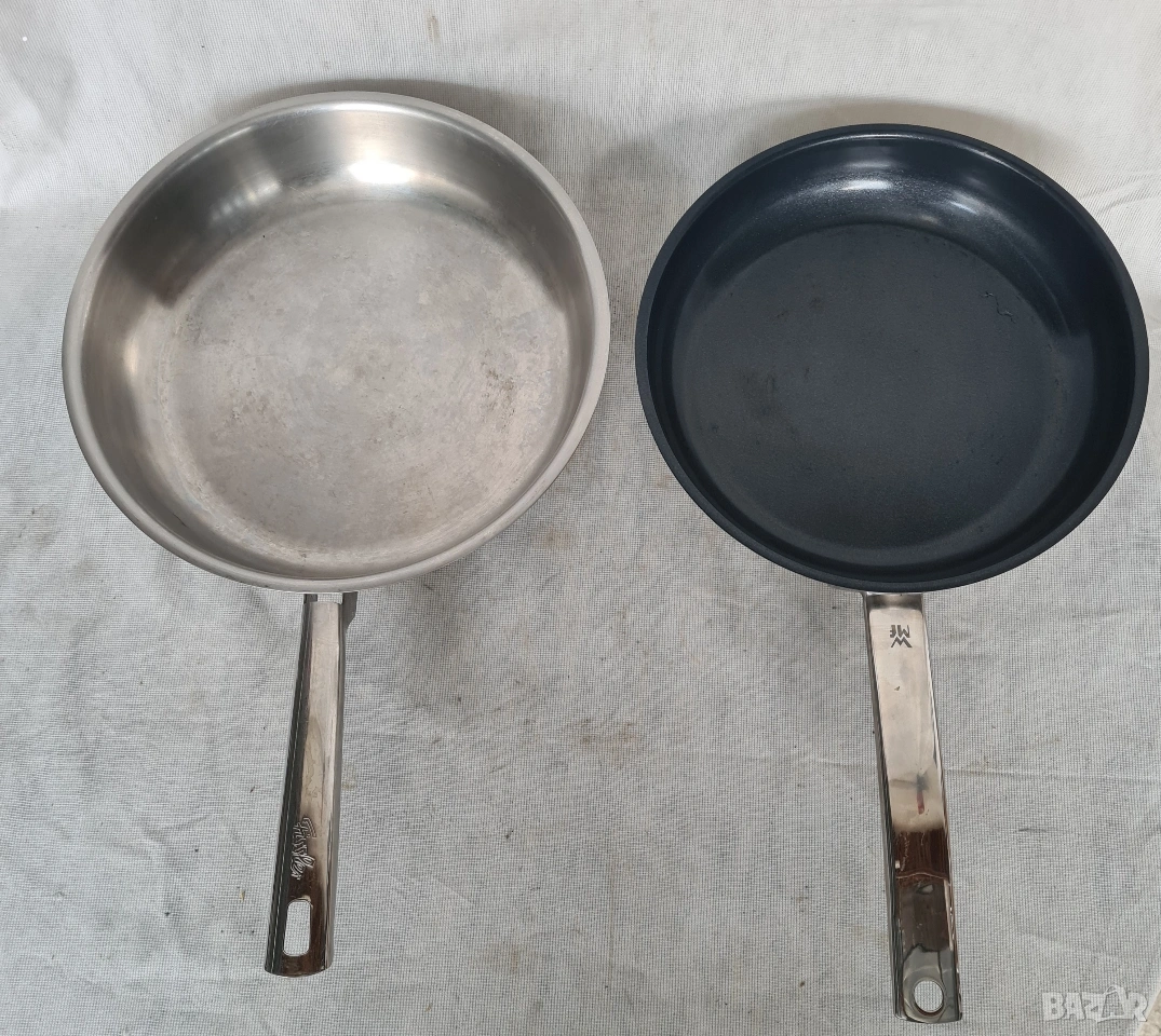 Неръждаема стомана комплект от два професионални тигана на най-добрите немски производители – WMF и Fissler. Тиганите са изработени от висок клас неръждаема стомана 18/10 и са създадени да служат десетилетия цена за бр