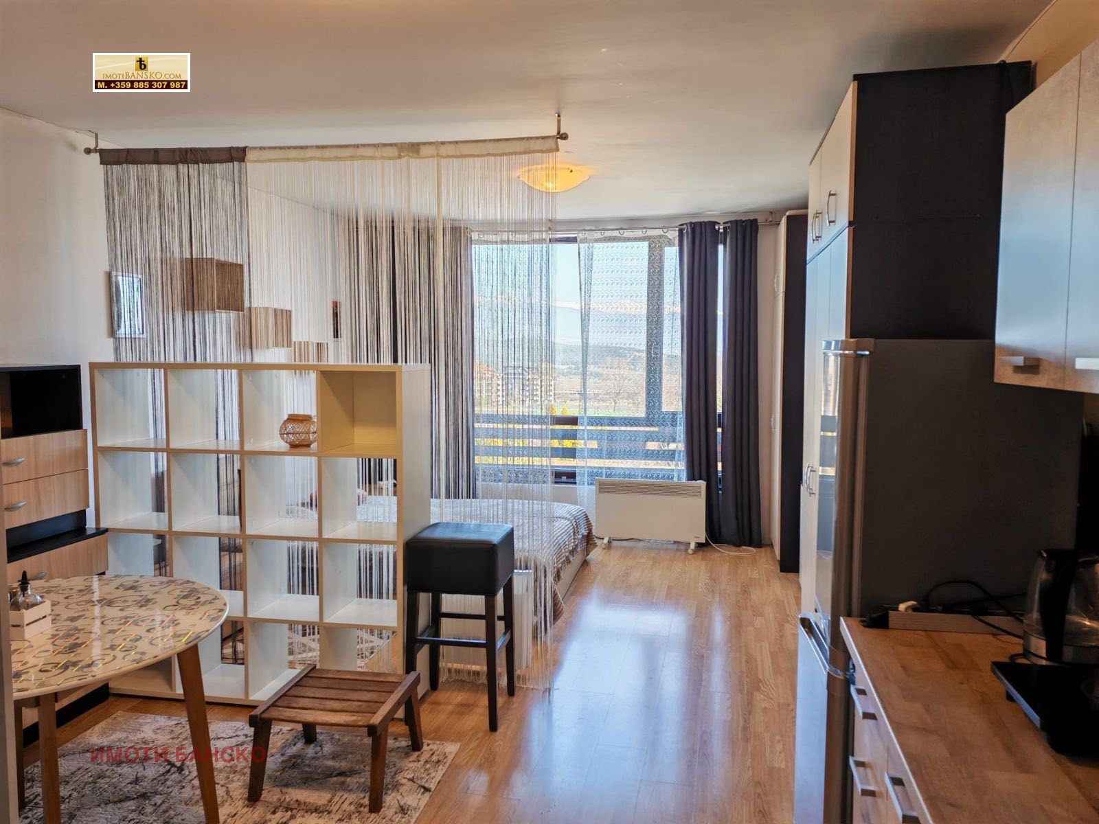 Имоти Банско БГ ЕООД представя на вашето внимание уютно и напълно обзаведено еднопространствено студио за продажба в комплекс Аспен Суитс , разположен в непосредствена близост до престижния Пирин Голф и само на минути път от Разлог и Банско. Апартаментът се намира на втори жилищен етаж и заема обща площ от 43 кв.м. Жилището е изключително светло и поддържано, като се състои от входно антре, просторна стая с обособен кухненски бокс, кът за хранене, зона за отдих и спалня, както и баня с вана и тоалетна. Основно предимство на имота е прекрасната гледка към величествената Рила планина, която се разкрива директно от прозорците на студиото. Жилището се предлага без тераса, което оптимизира вътрешното пространство и го прави лесно за отопление и поддръжка. Комплексът предлага отлични условия за почивка целогодишно, включително открит басейн през лятото, рецепция и денонощна охрана, като собствениците имат достъп и до СПА центъра в основната сграда на комплекса. Този имот е отлична инвестиция както за лично ползване и ваканционен отдих сред чистия планински въздух, така и за отдаване под наем.