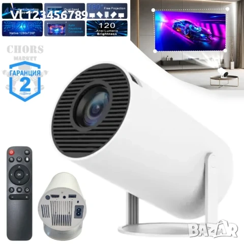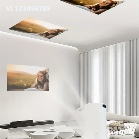 Проекторът може да проетира изображения с размер до 130 инча, осигурявайки голям и впечатляващ дисплей, идеален за домашно кино.