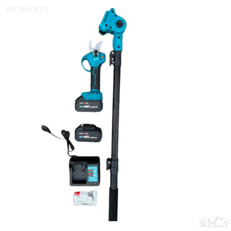 Акумулаторна лозарска ножица KraftRoyal 36V 8Ah с телескопичен прът до 2.7м