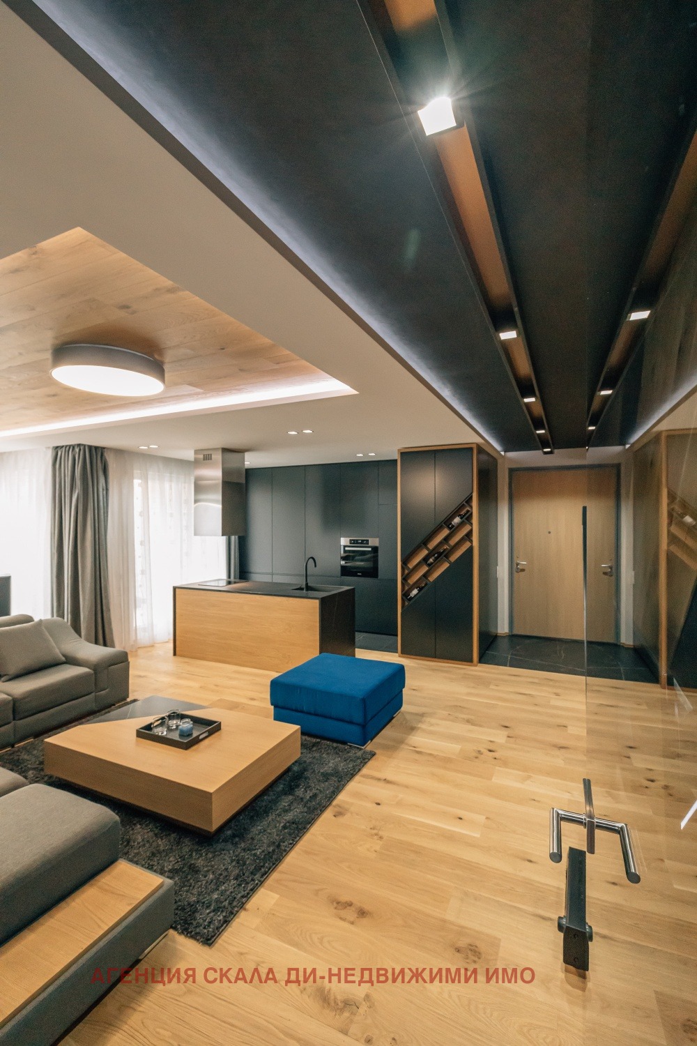 Mодерен тристаен апартамент в жилищен комплекс Flora Garden, напълно обзаведен и оборудван !!! Flora Garden е комплекс от затворен тип и се намира на комуникативна локация, в непосредствена близост до хипермаркет Билла и България Мол . Жилището е завършено и обзаведено по индивидуален дизайнерски проект. Състои се от просторен двевен тракт с мека мебел, трапезарна част и вградена кухня с ел.уреди на MIELE. слънчева тераса, на която е монтирано газовото котле. Спалня със собствена баня, вградени гардероби на две от стените. Втора спалня, обзаведена със спалня и гардероб, втора баня с тоалетна. Климатик в хола, скрито лед осветление!!! Възможност за наемане на подземно паркомясто ! Газицифиран!!! Без домаши любимци!!! Условия за наемане - 2 депозита + текущия наем.