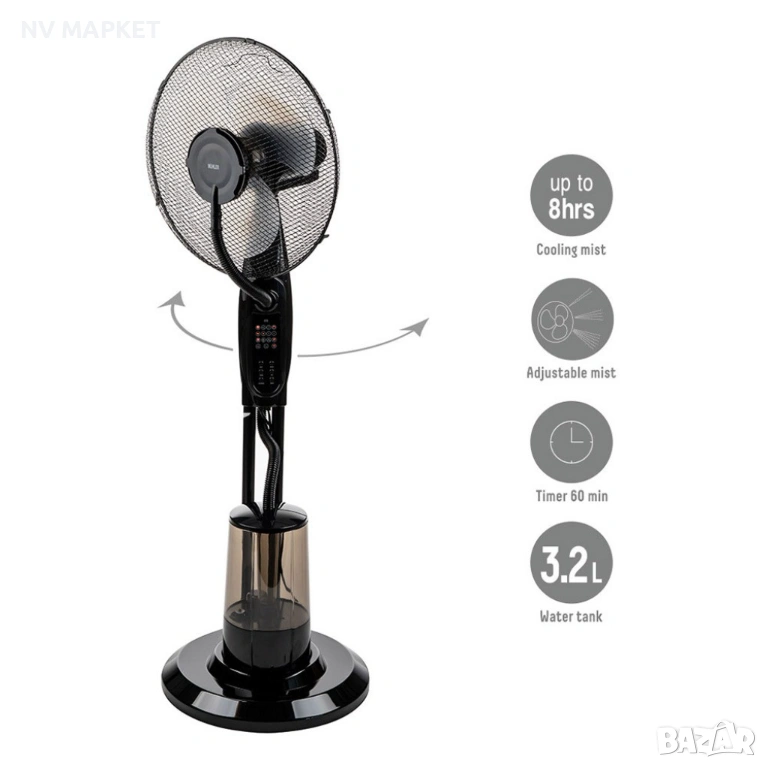 Вентилатор с водна мъгла 16'', 75W, LED, дист. упр-е