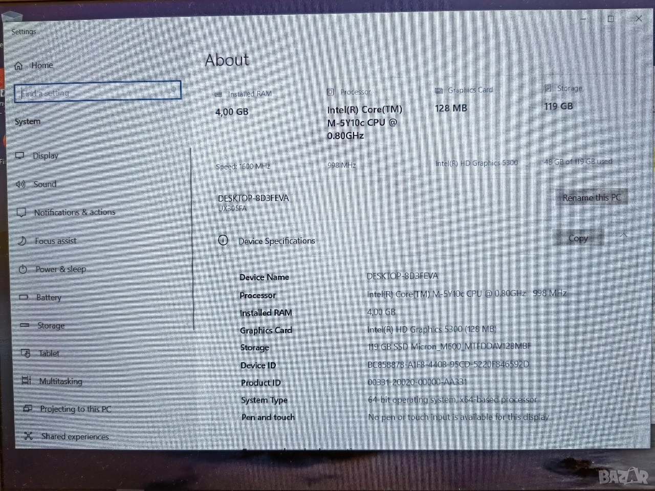 Лаптопа е работещ, невероятно лек и удобен за пренос и работа. Батерията държи цял ден при работа. Размера на екрана е 13.3 Oled, full HD с мевероятни цветове и контраст. Матово покритие на екрана което е идеално за работа на открито. 4GB RAM о 120 GB SSD.