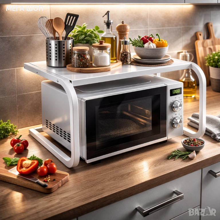 Поставка органайзер за микровълнова фурна, многофункционална, изработена от метал - бяла
