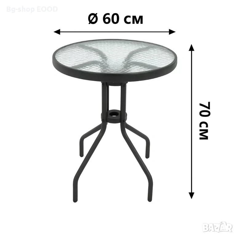 Компактен диаметър 60 см - идеален за балкони, тераси и по-малки външни пространства.