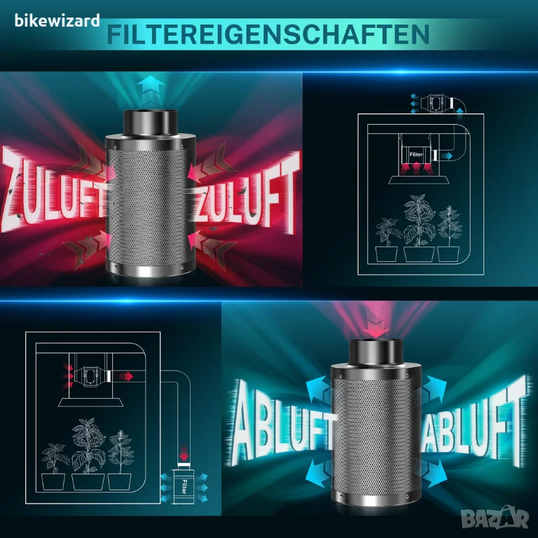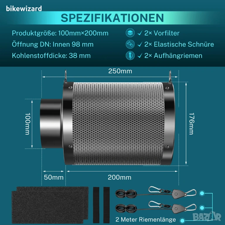 Филтър с активен въглен 100 мм x 200 мм с 38 мм сърцевина и предфилтри за палатки за отглеждане НОВ → Обява 53879450