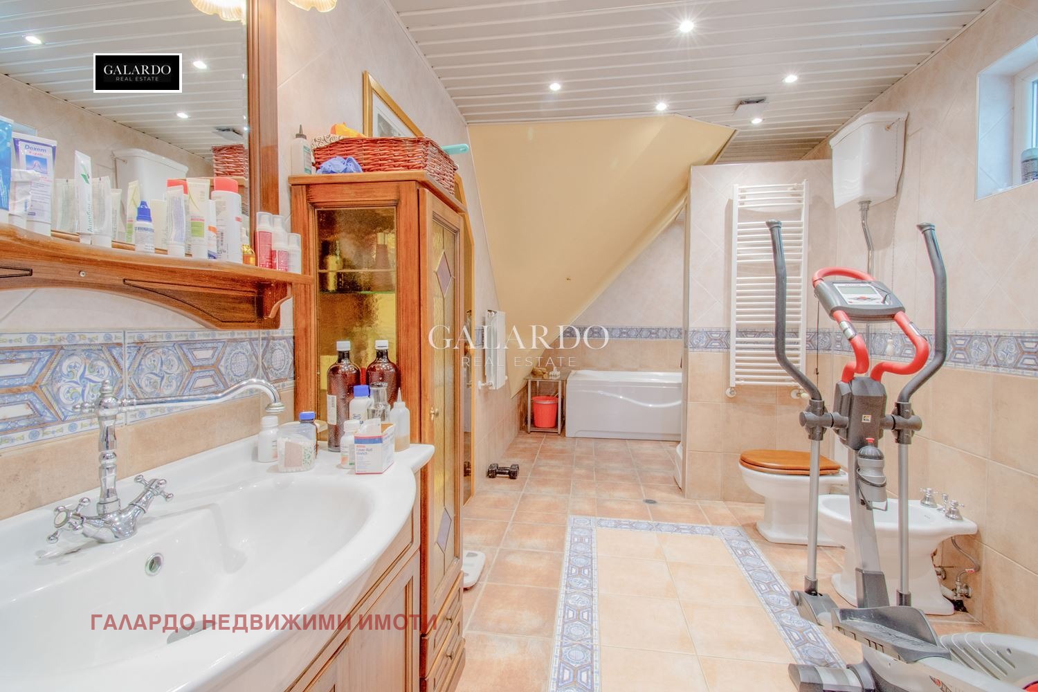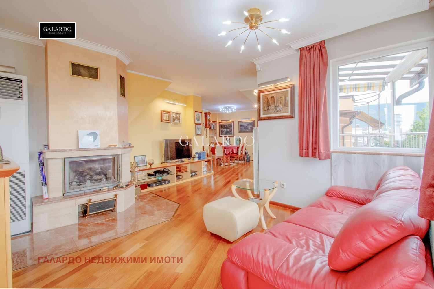 Дневна зона, трапезария и кухненски бокс, три самостоятелни спални, голяма баня със собствена сауна, втора баня, четири тераси с приятни гледки.