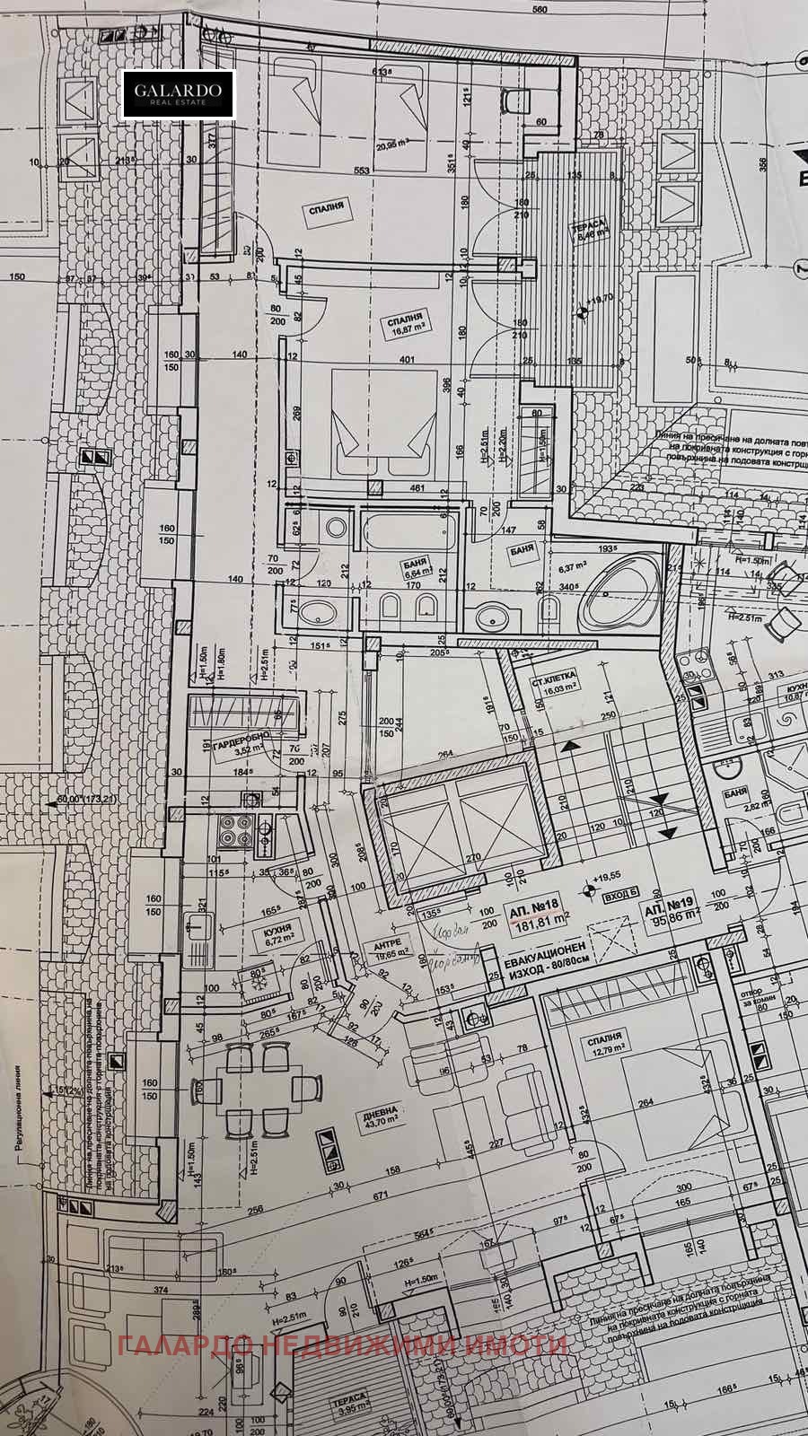 Апартаментът е с обща площ от 223,68 кв.м. (чиста площ 188,66 кв.м.) и впечатлява със своята светлина и простор. Разпределението е функционално и удобно: