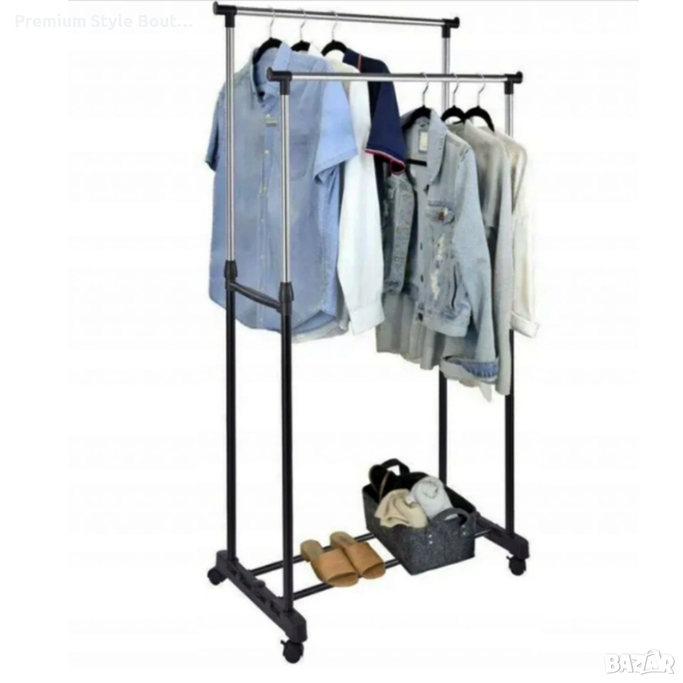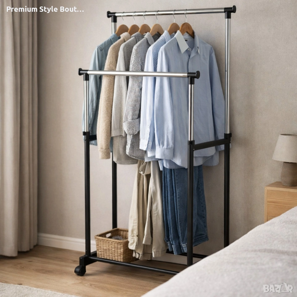 Двойна стойка за дрехи на колела - лесно преместване и повече място за дрехи