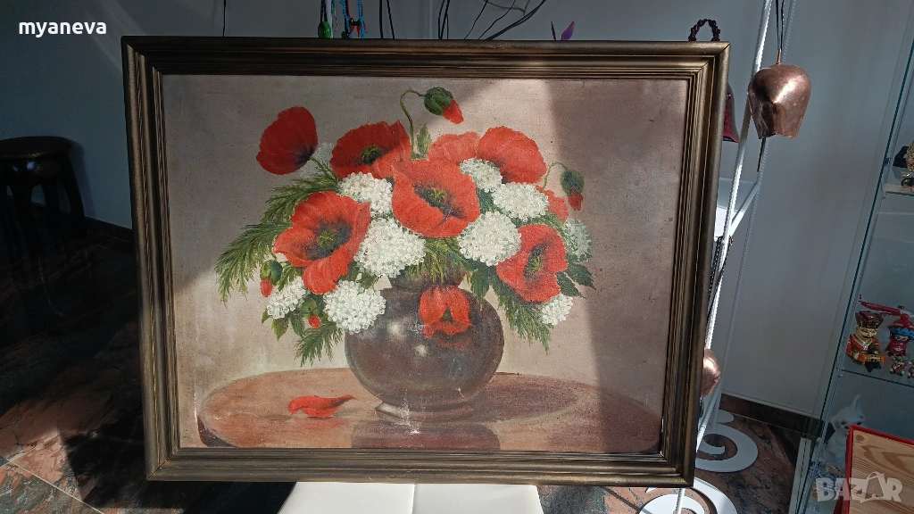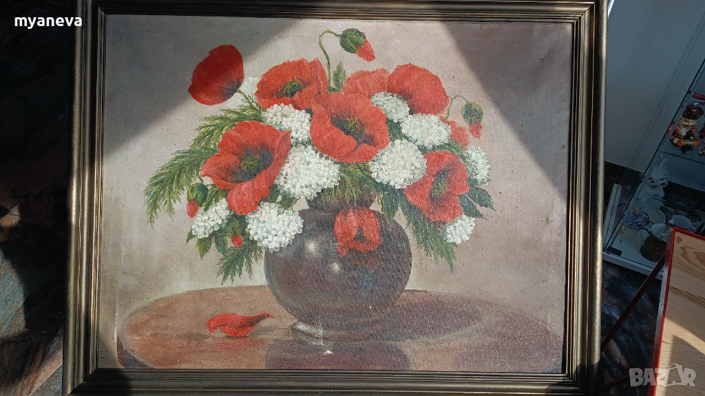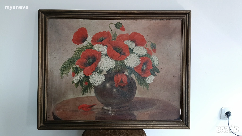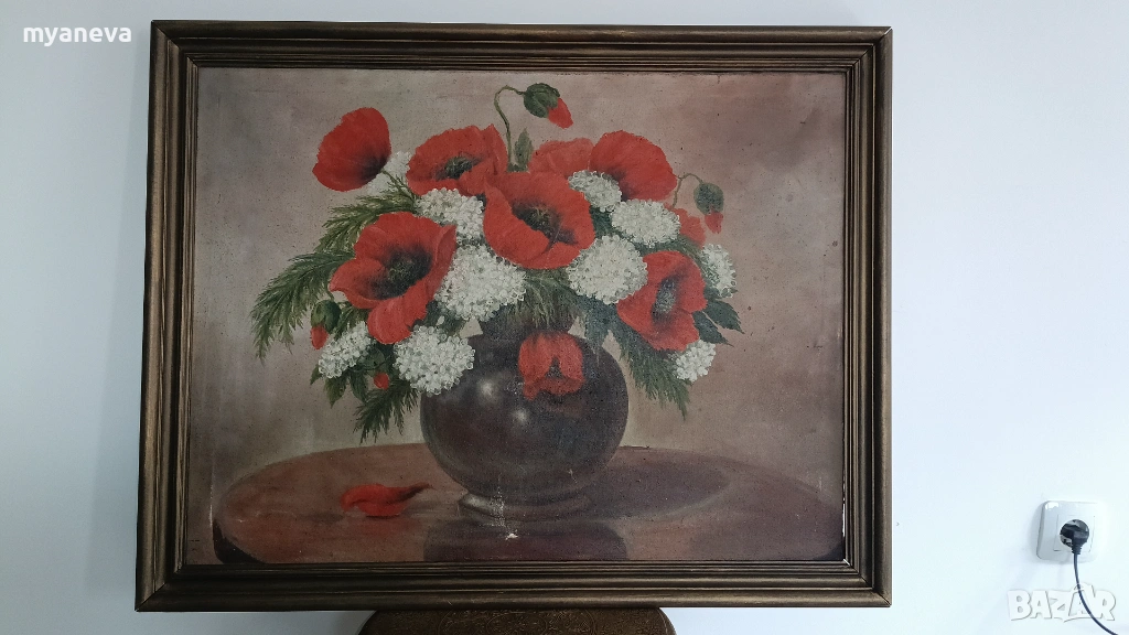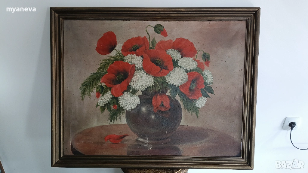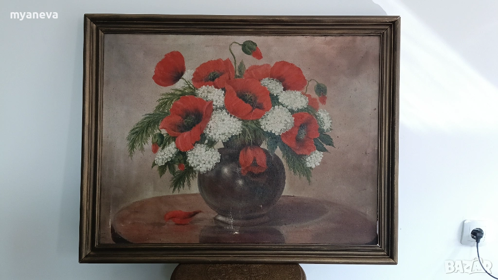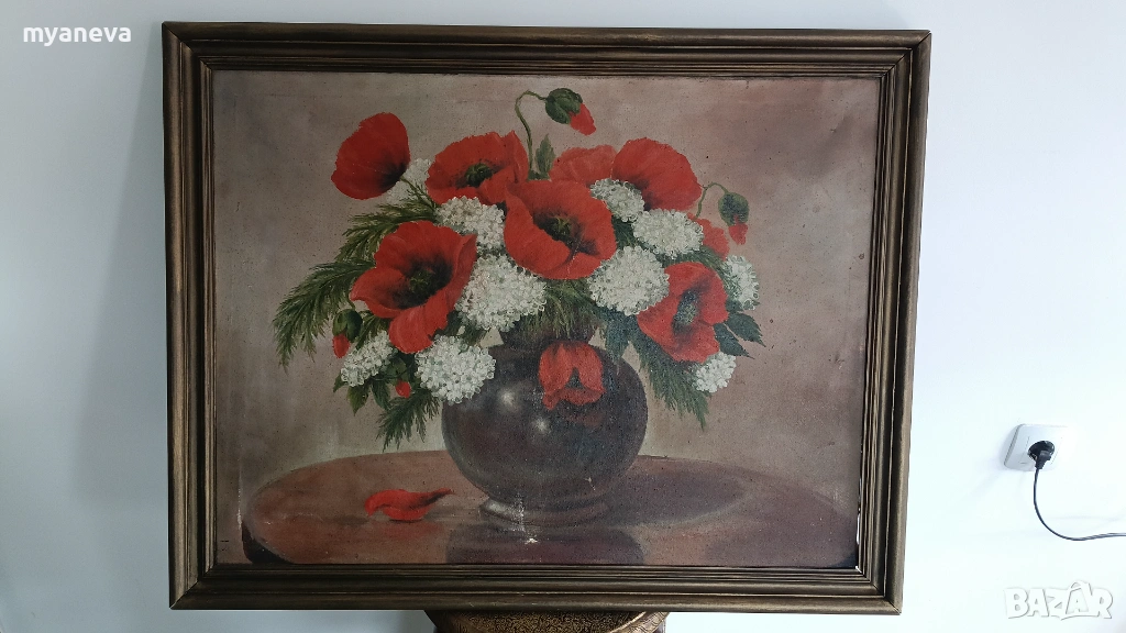 Стара картина с маслени бои върху платно в дървена рамка. Размер 88 / 68 см. Цена 80 евро.