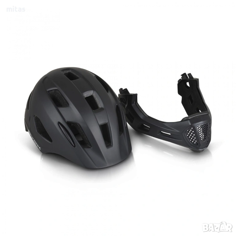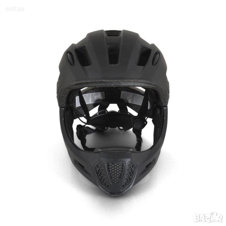 - Пълна защита на главата и лицето – Full-Face конструкцията предпазва челото, слепоочията, тила и брадичката.