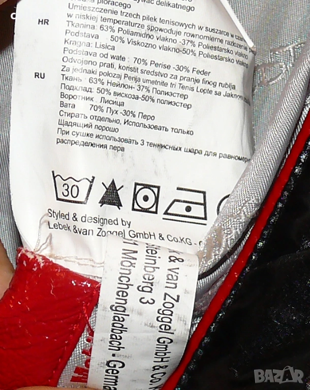 с пълнеж от патешки пух. Яка с естествен косъм от лисица.
