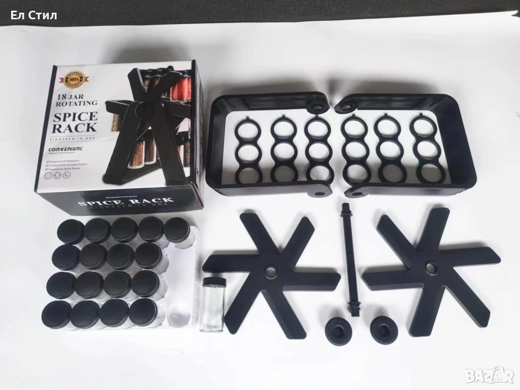 Стилен въртящ се органайзер за подправки,стъклени бурканчета,18 части