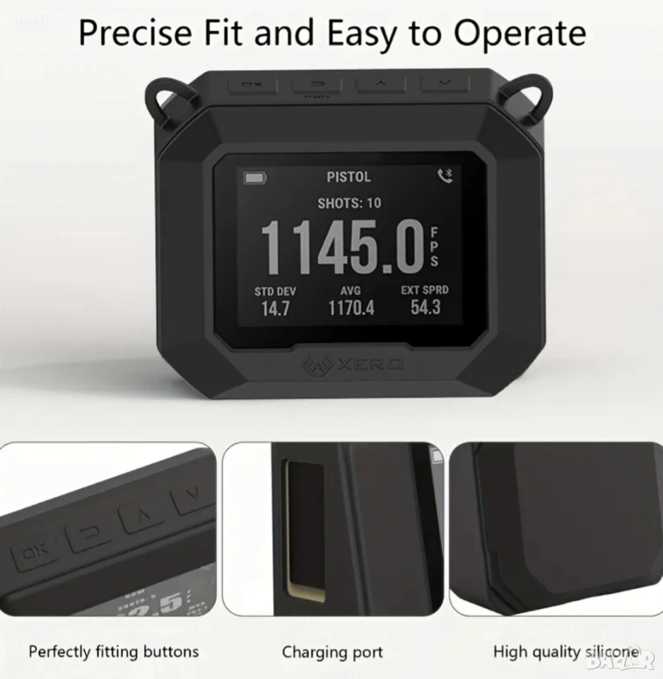 Продавам силиконов калъф за Garmin Xero C1 Pro хронограф – идеален за защита на устройството при стрелба и транспорт.