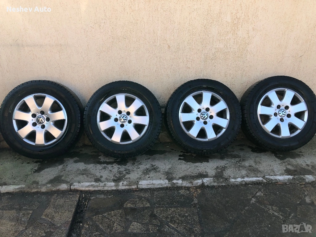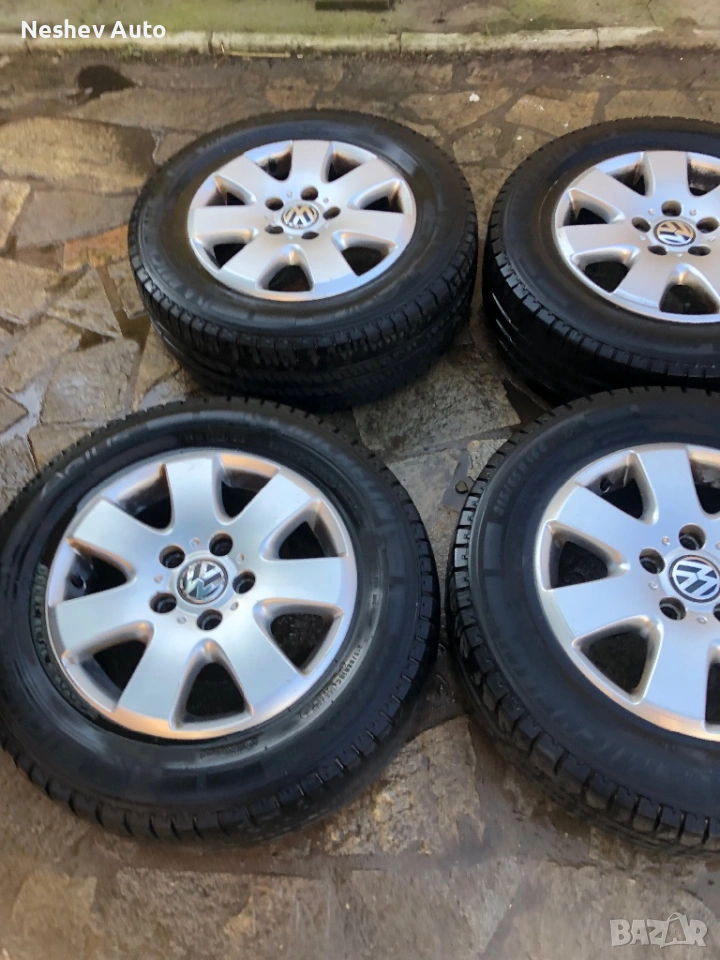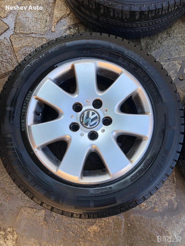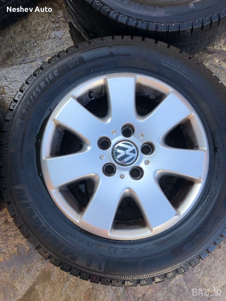 4бр. алуминиеви джанти оригинални от VW Transporter T5 16 цола. Нов внос в много добро състояние без кривини и заварки. Гумите не са добри.