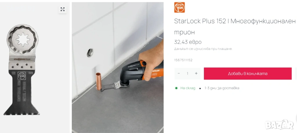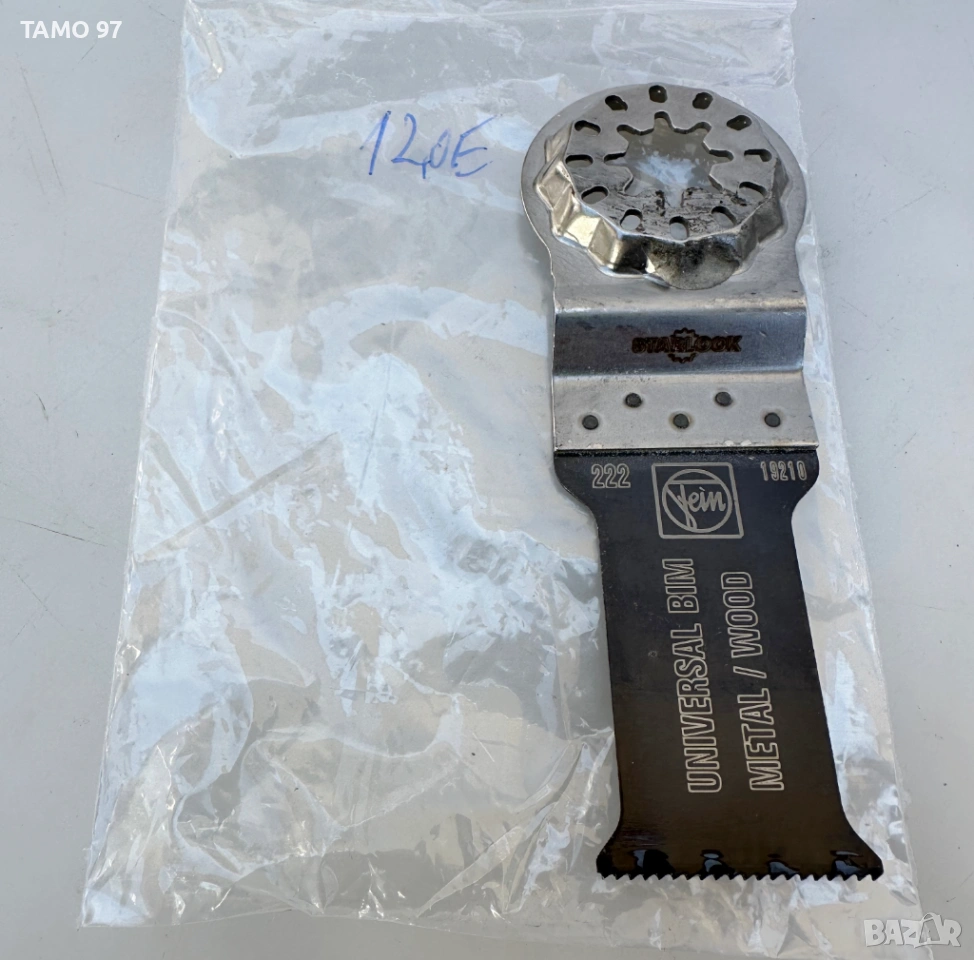 8. Използван веднъж биметален нож с дълъг експлоатационен живот за разане на всички видове дърво, гипсокартон и пластмаси, могат да се справят и с пирони Fein 161 - 10eвро / Магазинската цена е: 53евро