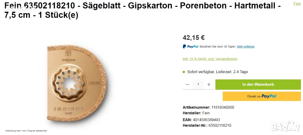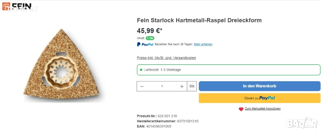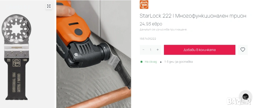 7. Нов биметален нож за рязане включително метални листове до 2 мм, алуминий, мед, дърво, пластмаси и гипсокартон Fein 222 - 10евро / Магазинската цена е: 24.93евро
