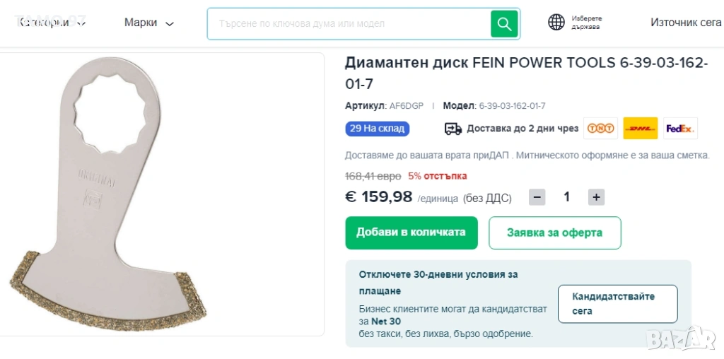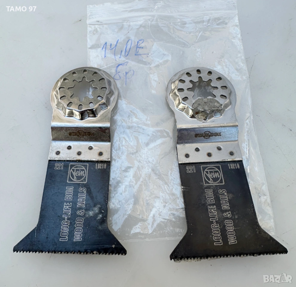 5. Нов биметален нож за рязане за всички видове дървесина, гипсокартон, пластмаса, подсилена със стъклени влакна, и пластмасови материали Fein 221 - 10евро за брой / Магазинската цена е: 28.68евро