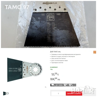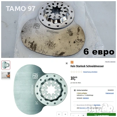 Продавам нови ножове за мултифункционален инструмент / реноватор на Fein / Фейн, оригинални немско производство са, внос от Франция. Обявените цени са написани по-надолу, кое колко струва. Пращаме с опция преглед и тест с куриерска фирма еконт може и лично предаване за гр. Шумен.