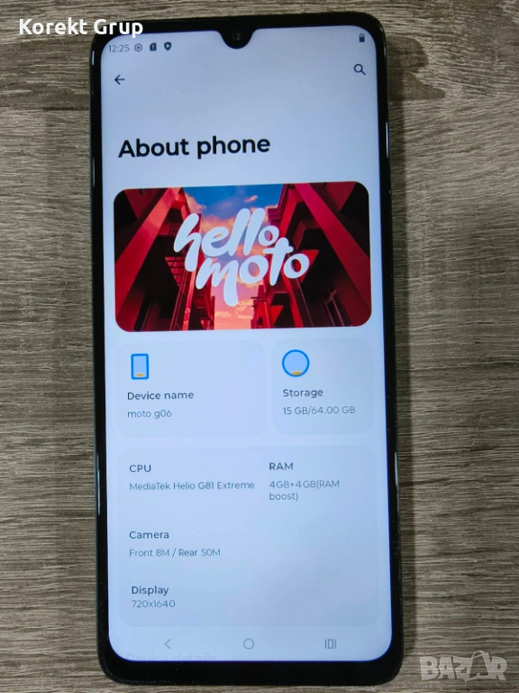 Продавам мобилен телефон Motorola G06 в перфектно състояние без забележки в оригиналната си кутия върната фабрични настройки.Има вътрешна памет 64гб и 4гб рам памет която можеш да разширяваш допълнително.телефона може да се види на място за гр.Варна или да се изпрати по Еконт с преглед и тест.