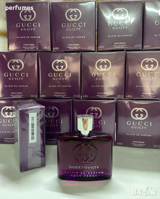Gucci Guilty Elixir de Parfum pour Femme от Gucci е ориенталски цветен аромат за жени. Това е нов аромат. Gucci Guilty Elixir de Parfum pour Femme е лансиран през 2023 г. Носът зад този аромат е Natalie Gracia-Cetto. Връхните нотки са теменужка, мандора и бергамот; средните нотки са глициния, османтус и роза; базовите нотки са боб тонка, ванилия и пачули.