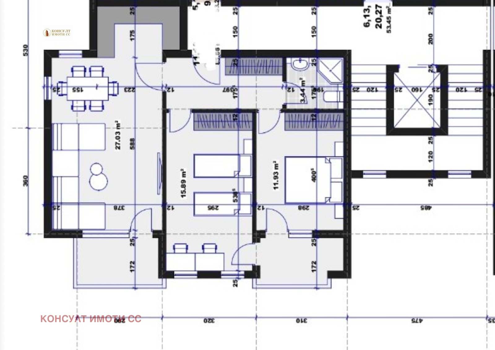 Продава апартамент от две спални, дневна с бокс, баня и тоалетна, две тераси.