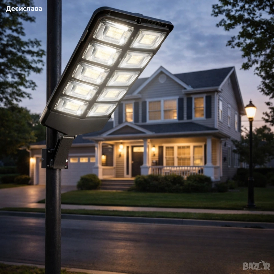Улична соларна лампа BK-260-10 DRAGON 3000W – ефективно решение за силно осветление без разходи за електричество. Подходяща за двор, градина, паркинг, алеи и фасади. Моделът разполага с 10 LED секции, които осигуряват мощна и равномерна светлина дори в тъмни участъци. Вграденият PIR сензор за движение активира лампата при засичане на движение, което повишава сигурността и пести енергия. Трите режима на работа позволяват избор според нуждите – максимална яркост, икономичен режим или автоматично включване при движение. Управлението става лесно чрез включеното дистанционно. Соларното захранване елиминира нуждата от кабели и сметки за ток, а устойчивият корпус с клас на защита IP65 гарантира надеждна работа при различни атмосферни условия. Технически характеристики: Мощност: 3000W LED секции: 10 Режими: 3 – висок, икономичен, сензор за движение Сензор: вграден PIR Дистанционно управление: да Клас на защита: IP65 Размери: дължина със стойка 64 см, височина на панела 43 см, ширина 14.2 см Захранване: соларно, с вградена батерия Предимства: Силно осветление с ниски разходи Автоматично включване при движение Лесен монтаж без окабеляване Устойчива на дъжд и прах Подходяща за различни външни пространства Изпращане с преглед и тест чрез куриер.