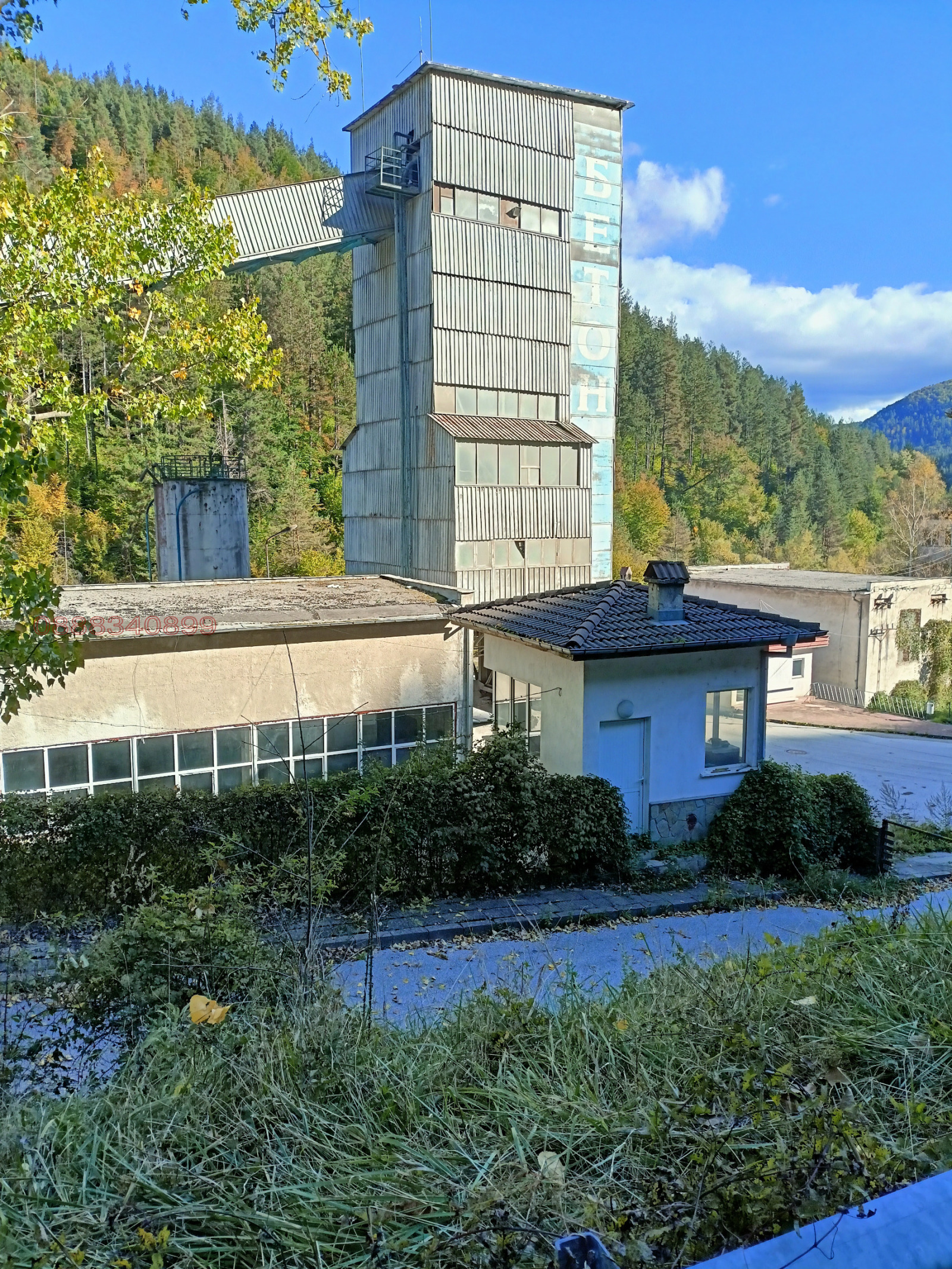 7850 кв.м, Индустриален имот с голям потенциал за различни видове производствени дейности. Находящ се в гр. Смолян, Промишлена зона кв. Устово. Имотът е с площ от 7850 кв.м., с лице на главен път Смолян-Рожен-Пловдив. Застроената площ в имота е 1780 кв.м. В имота са разположени: - Бетонов възел с капацитет 70 куб.м./час, с два бункера за едновременно товарене. Възелът е напълно автоматизиран, дозаторите за материалите и добавките за бетона са тегловни. - Лаборатория за вземане на проби от бетоновите смеси и отлежаване на същите. - Два силоза за цимент с обем 200 тона. - 12 закрити бункера за инертен материал с обем 250 куб.м. всеки един от тях. - Компресорно отделение с два компресора и съдове под налягане 10 куб.м. - Ремонтна работилница с телфер и канал за автомобили с площ 350 кв.м. - Ремонтна работилница 25 кв.м., оборудвана с голям струг, настолна бормашина, шмиргел, електрожени и др. - Кантар 50 тонен за приемане на инертни материали и цимент със сграда към него от 25 кв.м. - Съоръжение Утайник за отпадни производствени води с две ями и камера за третиране на отпадъчната вода. - Сграда на 4 етажа със РЗП 1312 кв.м. с PVC дограма. Сутерен 328 кв.м. предназначен за склад или производствена дейност с достъп на мотокар. Първи етаж офиси 328 кв.м. и два свободни етажа. - Сграда със ЗП 420 кв.м. с баня и тоалетни (мъже-жени), която е подходяща за склад, магазин или производствени дейности с достъп на мотокар. - Сграда от 78 кв.м. с 4 стаи (Експедиция). Възможност за демонтаж на бетоновия възел, като финансовия резултат от това действие ще е в полза на купувача.