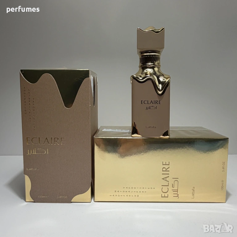 Eclaire от Lattafa Perfumes е флорален, плодов и гурме аромат за жени. Eclaire е пуснат на пазара през 2024 г. Връхни нотки са карамел, мляко и захар; средни нотки са мед и бели цветя; базови нотки са ванилия, пралина и мускус.