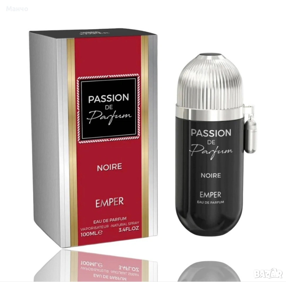 Passion De Parfum Noire | Парфюмна вода 100 мл | от Emper Връхни нотки: Цитруси, Кедър, Амбър, Мента Средни нотки: Водни нотки, Ирис, Черен пипер Базови нотки: Виолетка, Хелиотроп, Карамфил Смел и изтънчен, Passion De Parfum Noire е аромат, който излъчва сила и елегантност. Той се отваря с освежаващ взрив от цитруси, кедър, амбър и мента, създавайки жизнено и ободряващо въведение. Сърцето разкрива уникална смесица от водни нотки, ирис и черен пипер, добавяйки дълбочина с изискан, модерен оттенък. Накрая, базата се задържа с виолетка, хелиотроп и карамфил, оставяйки топла, интригуваща следа, която е едновременно чувствена и мистериозна. Създаден за уверените хора, Passion De Parfum Noire е отличителен аромат, който привлича вниманието, където и да отидете.
